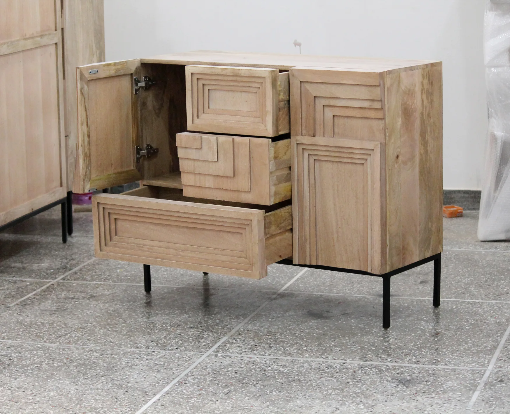 DISCRIPTION :- SIDE BOARD 2 DOORS 3 DRAWERS